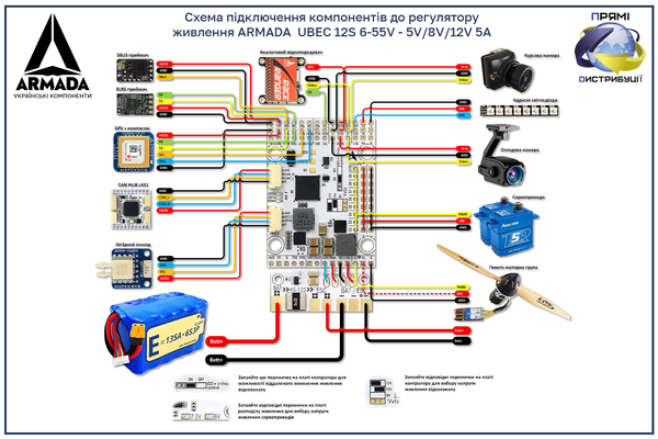 - BEC для серв: 5-7.2В/5А