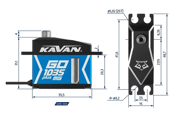 Сервопривод 45г Kavan GO-1035MGP 22кг/0.07с/8.4В